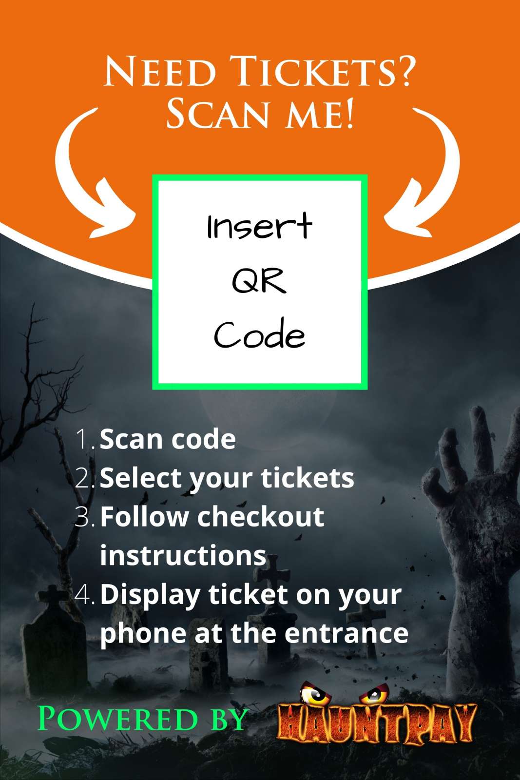 With this customizeable sign, guests can scan the QR code with their phone and go directly to your haunt’s ticketing page to purchase online.